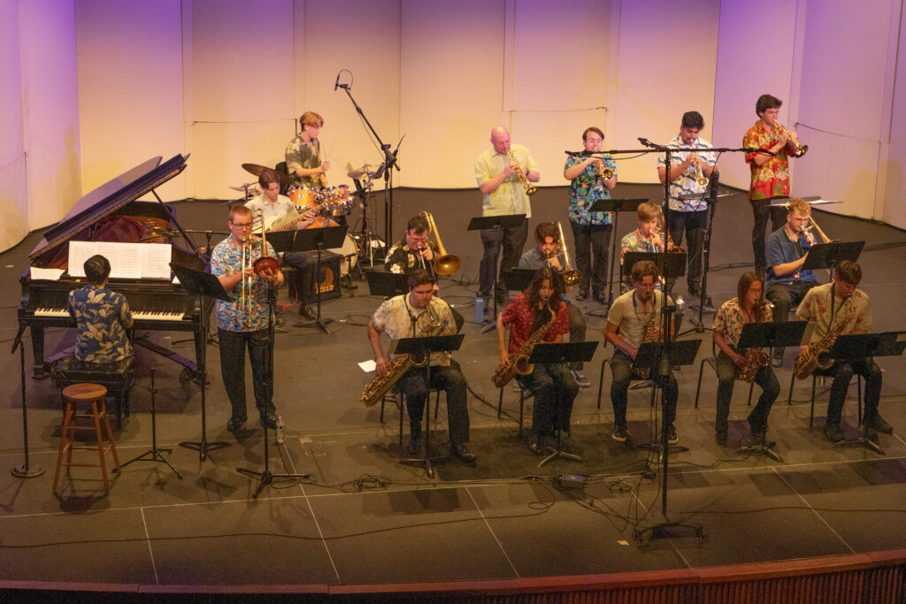 Ben Wodarczyck’s senior recital consisted of a brass quintet, a jazz combo of four trumpets, a rhythm section and a full band. Photo by Christian Kelly.