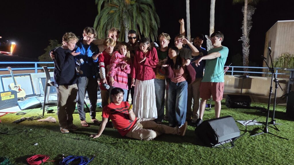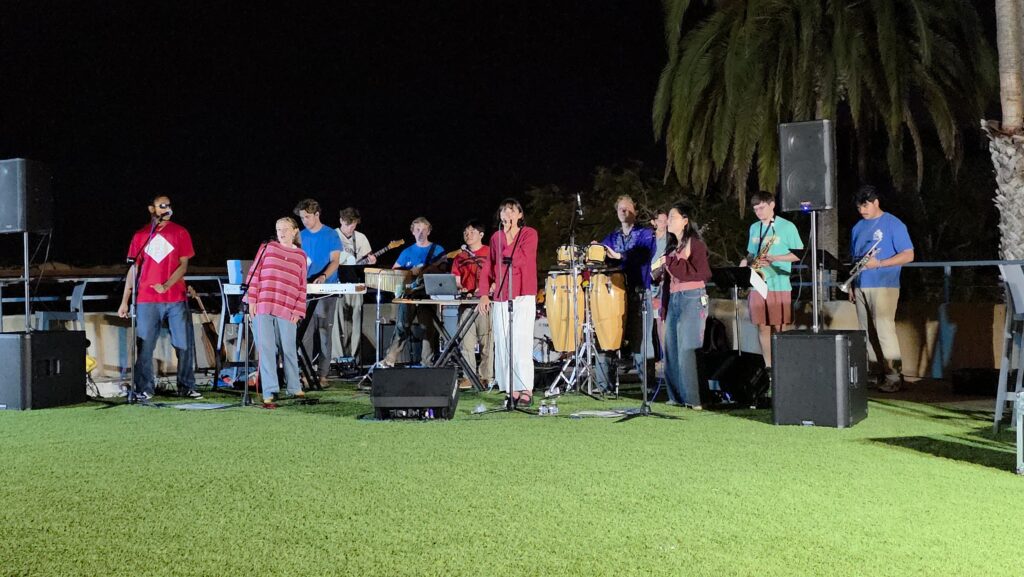 On a warm evening at Point Loma Nazarene University, fourth-year commercial music major Jay Gomez transformed Ryan Learning Deck into a live music venue on March 22. His event featured stage lighting, a full band and home-cooked Filipino food prepared by members of his church.