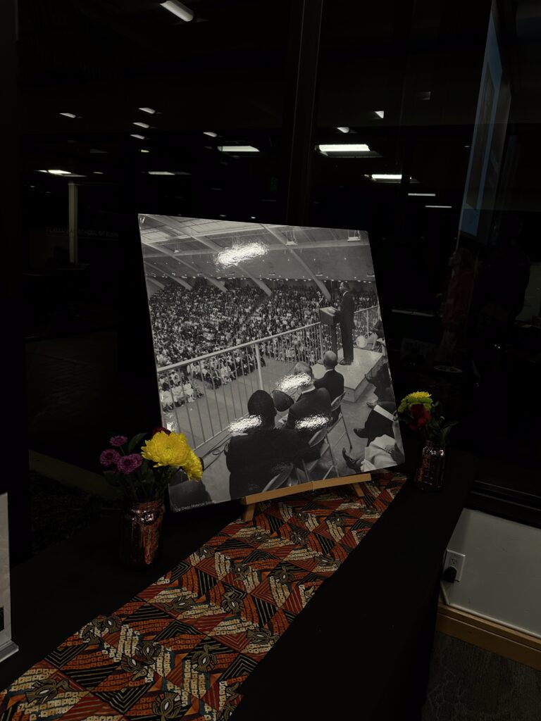 The annual Martin Luther King Jr. vigil was held at Point Loma Nazarene University in the Fermanian Conference Center, hosted by the Office of Multicultural and International Student Services (MOSAIC), commemorating the life of the civil rights leader and allowing students and faculty to reflect on the impact he left on their lives.